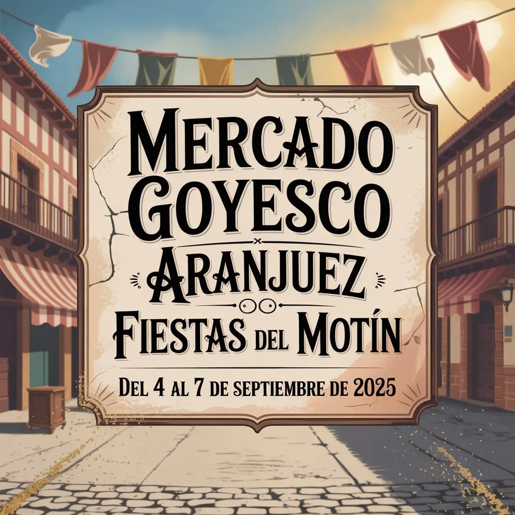 Durante las Fiestas del Motín 2025, Aranjuez revive uno de los capítulos más relevantes de su historia con un evento que combina cultura, patrimonio y tradición: el Mercado Goyesco, que se celebrará del 4 al 7 de septiembre en pleno centro de la ciudad, en el Paseo del Jardín de Isabel II y Paseo del Brillante, junto a la emblemática Plaza de San Antonio.