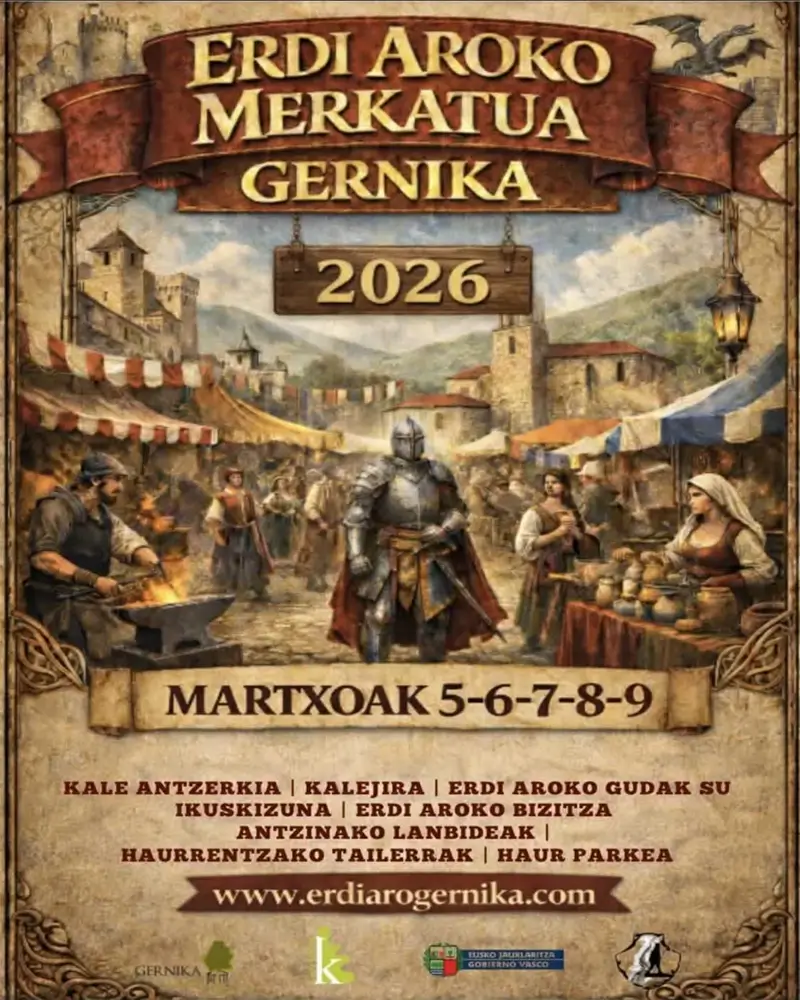 El Mercado Medieval de Gernika (Vizcaya) 2026 se celebrará del 5 al 9 de marzo de 2026. Durante cinco días, la villa volverá a llenarse de artesanía, alimentación y gastronomía, acompañadas de animación constante que transformará sus calles en un animado rincón medieval.