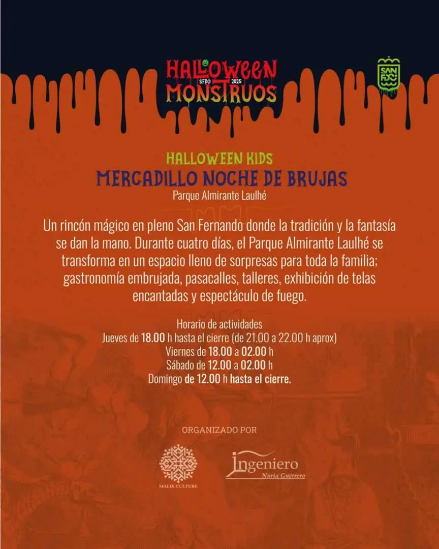 Del 31 de octubre al 2 de noviembre de 2025, el Parque Almirante Laulhé, en pleno centro de San Fernando (Cádiz), se convertirá en un lugar lleno de hechizos, misterio y ambiente medieval con la celebración del Mercado Medieval “La Noche de las Brujas”. Un evento temático donde el terror festivo de Halloween se mezcla con la estética de la Edad Media, en una experiencia única para grandes y pequeños.