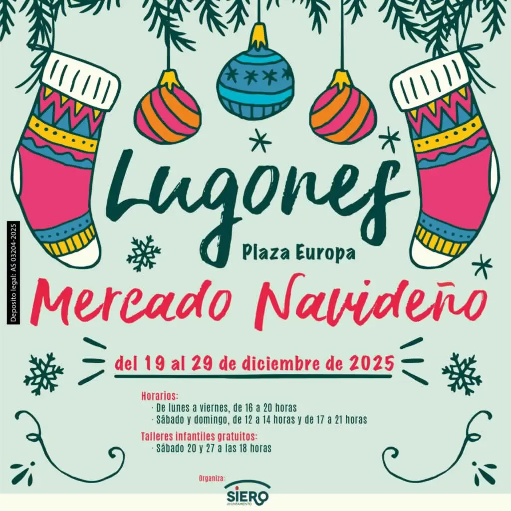 Del 19 al 29 de diciembre de 2025, la Plaza de Europa de Lugones (Asturias) se convertirÔ en el corazón de la Navidad con la celebración del Mercado Navideño de Lugones 2025. Durante diez días, vecinos y visitantes podrÔn disfrutar de un espacio mÔgico, repleto de luces, casetas de madera decoradas con motivos navideños, productos únicos y actividades pensadas para todos los públicos.