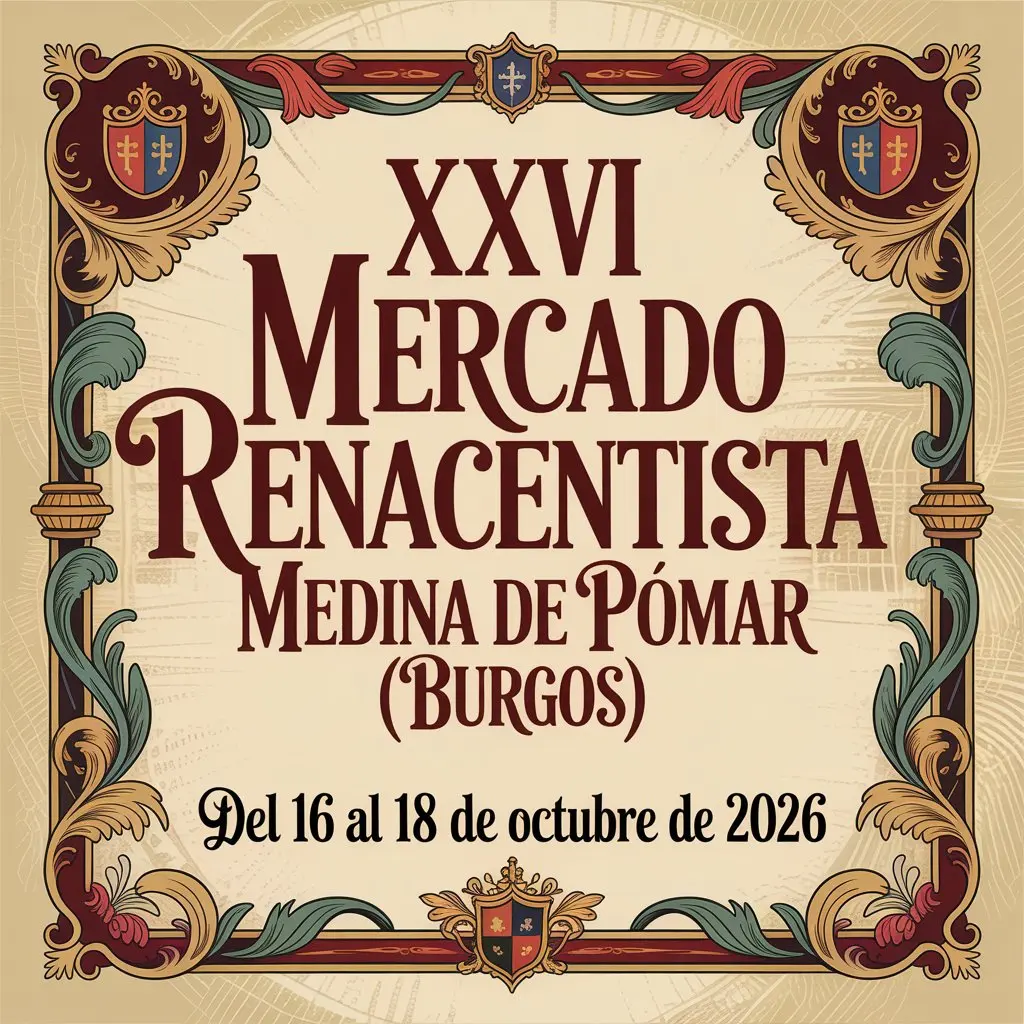 aDel 16 al 18 de octubre de 2026, Medina de Pomar, una de las localidades con más historia del norte de la provincia de Burgos, celebrará la XXVI edición de su Mercado Renacentista, un evento ya profundamente arraigado en la identidad cultural del municipio.